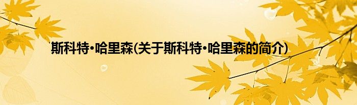 本文关于斯科特·哈里森的简介就讲解完毕,希望对大家有所帮助。