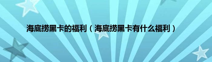 海底捞黑卡是海底捞黑海会员,黑海会员是最顶级最高的会员。海捞黑卡无需排队即可在店内享受及时享受的福利;每个月可以获得一张包厢票;生日当天可以获得全天礼物;店内用餐可免费赠送果盘和零食;用餐时,在桌上放一张会员卡,以示尊严。