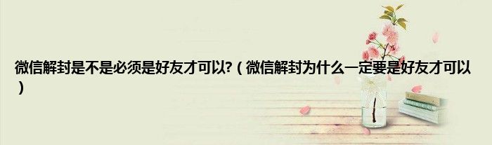 大家好,小常来为大家解答以上问题。微信解封是不是必须是好友才可以?,微信解封为什么一定要是好友才可以很多人还不知道,现在让我们一起来看看吧!