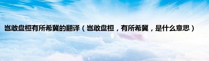 大家好,小常来为大家解答以上问题。岂敢盘桓有所希冀的翻译,岂敢盘桓,有所希冀,是什么意思很多人还不知道,现在让我们一起来看看吧!