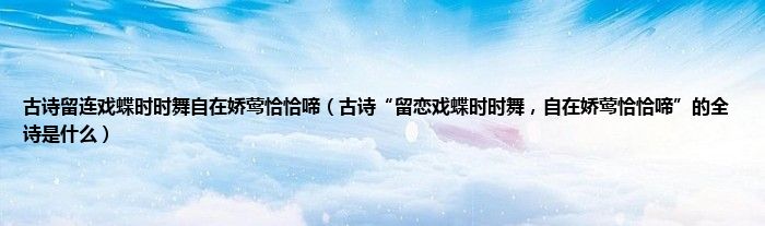 大家好,小常来为大家解答以上问题。古诗留连戏蝶时时舞自在娇莺恰恰啼,古诗“留恋戏蝶时时舞,自在娇莺恰恰啼”的全诗是什么很多人还不知道,现在让我们一起来看看吧!