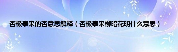 否极泰来的否意思解释(否极泰来柳暗花明什么意思)