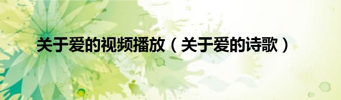 大家好,小常来为大家解答以上问题。关于爱的视频播放,关于爱的诗歌很多人还不知道,现在让我们一起来看看吧!