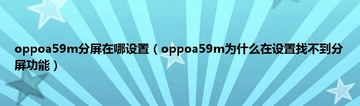 大家好,小常来为大家解答以上问题。oppoa59m分屏在哪设置,oppoa59m为什么在设置找不到分屏功能很多人还不知道,现在让我们一起来看看吧!