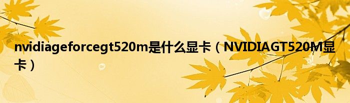 是指显卡的型号为NVIDIAGeForceGT520M,这是一款移动版显卡,显卡参数如下:显存带宽:12.8(GB/sec);显存介面宽度:64-bit;支持的技术:PhysX游戏领域GPU加速的物理效果;CUDAGPU加速的通用计算;性能:本款显卡作为nvidia精视5系列的入门级显卡;足以满足日常应用的需要,部分大型网游也可以在中等特效下较为流畅的运行.是一款值得购买的显卡。