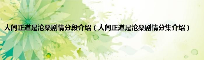 大家好,小常来为大家解答以上问题。人间正道是沧桑剧情分段介绍,人间正道是沧桑剧情分集介绍很多人还不知道,现在让我们一起来看看吧!