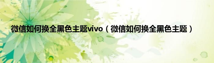 微信如何换全黑色主题vivo(微信如何换全黑色主题)