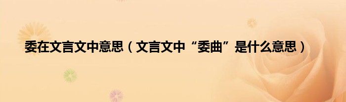 委在文言文中意思(文言文中“委曲”是什么意思)