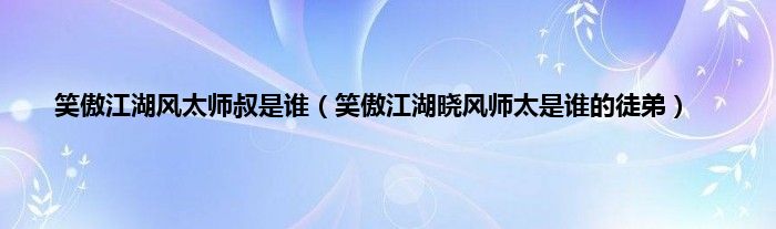 笑傲江湖风太师叔是谁(笑傲江湖晓风师太是谁的徒弟)