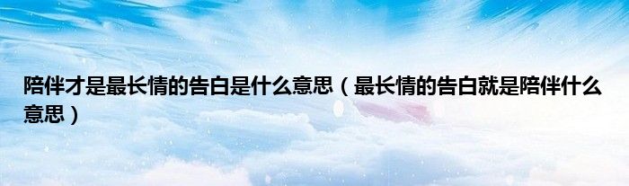 大家好,小常来为大家解答以上问题。陪伴才是最长情的告白是什么意思,最长情的告白就是陪伴什么意思很多人还不知道,现在让我们一起来看看吧!