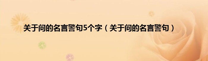 大家好,小常来为大家解答以上问题。关于问的名言警句5个字,关于问的名言警句很多人还不知道,现在让我们一起来看看吧!
