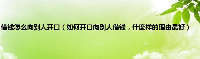 大家好,小常来为大家解答以上问题。借钱怎么向别人开口,如何开口向别人借钱,什麼样的理由最好很多人还不知道,现在让我们一起来看看吧!