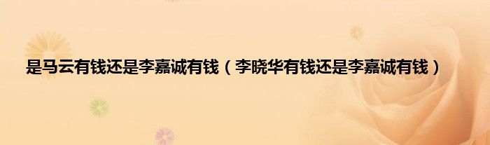 大家好,小常来为大家解答以上问题。是马云有钱还是李嘉诚有钱,李晓华有钱还是李嘉诚有钱很多人还不知道,现在让我们一起来看看吧!