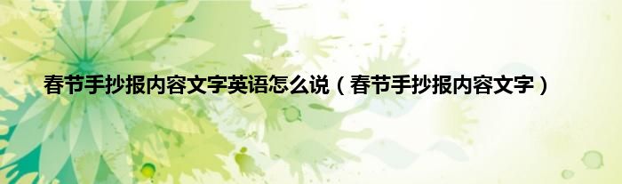 大家好,小常来为大家解答以上问题。春节手抄报内容文字英语怎么说,春节手抄报内容文字很多人还不知道,现在让我们一起来看看吧!