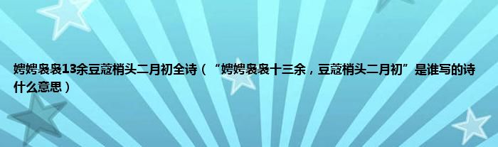 娉婷袅袅十三余,豆蔻梢头二月初。出自唐代诗人杜牧的《赠别二首·其一》。意思是十三四岁的少女姿态袅娜,举止轻盈美好,好像月枝头初开的豆蔻花。