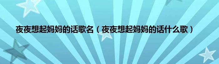 大家好,小常来为大家解答以上问题。夜夜想起妈妈的话歌名,夜夜想起妈妈的话什么歌很多人还不知道,现在让我们一起来看看吧!