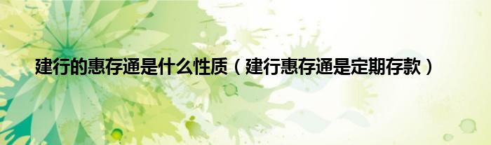 大家好,小常来为大家解答以上问题。建行的惠存通是什么性质,建行惠存通是定期存款很多人还不知道,现在让我们一起来看看吧!