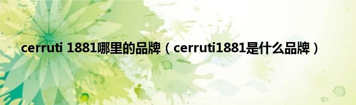 1、cerruti1881是一个法国时装品牌,这个牌子的男装剪裁上用意大利手工传统和英国风格的色彩配置,和法国的风格完美糅合在一起,让衣服有经典又新鲜的品位。