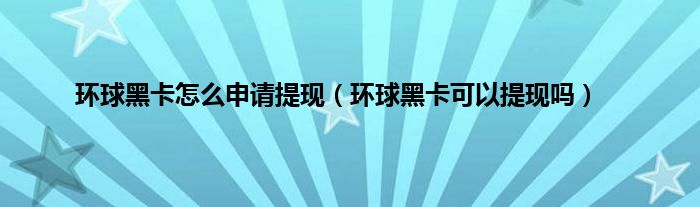 大家好,小常来为大家解答以上问题。环球黑卡怎么申请提现,环球黑卡可以提现吗很多人还不知道,现在让我们一起来看看吧!