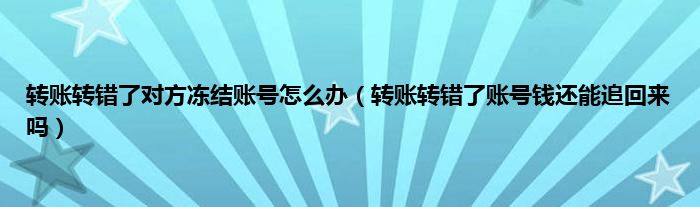 大家好,小常来为大家解答以上问题。转账转错了对方冻结账号怎么办,转账转错了账号钱还能追回来吗很多人还不知道,现在让我们一起来看看吧!