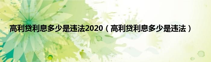 大家好,小常来为大家解答以上问题。高利贷利息多少是违法2020,高利贷利息多少是违法很多人还不知道,现在让我们一起来看看吧!