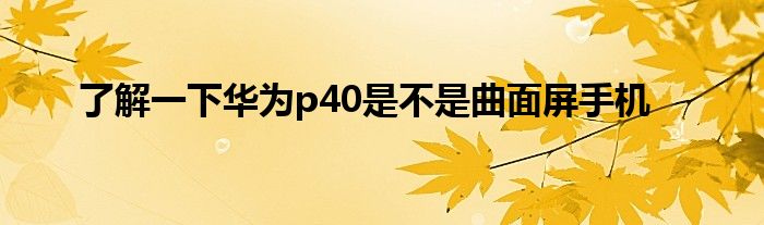 现在大家使用手机的频率越来越频繁,手机也为我们提供了许多的便利,今天小编也来说一下这个了解一下华为p40是不是曲面屏手机相关的文章,这个操作其实不复杂,接下来就给大家介绍一下了解一下华为p40是不是曲面屏手机,一起来看看吧: