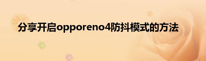现在大家使用手机的频率越来越频繁,手机也为我们提供了许多的便利,今天小编也来说一下这个分享开启opporeno4防抖模式的方法相关的文章,这个操作其实不复杂,接下来就给大家介绍一下分享开启opporeno4防抖模式的方法,一起来看看吧: