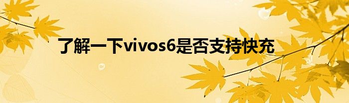 现在大家使用手机的频率越来越频繁,手机也为我们提供了许多的便利,今天小编也来说一下这个了解一下vivos6是否支持快充相关的文章,这个操作其实不复杂,接下来就给大家介绍一下了解一下vivos6是否支持快充,一起来看看吧: