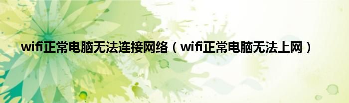 wifi正常电脑无法连接网络(wifi正常电脑无法上网)