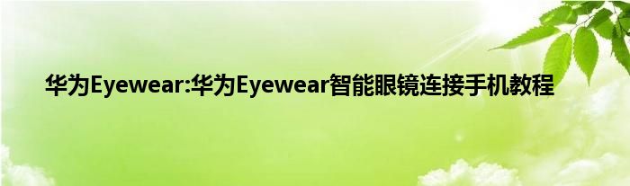现在大家使用手机的频率越来越频繁,手机也为我们提供了许多的便利,今天小编也来说一下这个华为Eyewear:华为Eyewear智能眼镜连接手机教程相关的文章,这个操作其实不复杂,接下来就给大家介绍一下华为Eyewear:华为Eyewear智能眼镜连接手机教程,一起来看看吧: