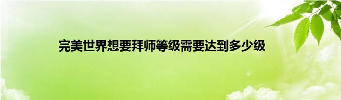 小编今天给各位玩家朋友们带来的是完美世界想要拜师等级需要达到多少级,有记得的玩家朋友吗?不记得也没有关系,小编已经帮助大家把完美世界想要拜师等级需要达到多少级找了出来,你只需要动动你的小手就可以轻松知道啦,快来瞧一瞧吧。