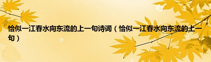 大家好,小科来为大家解答以上问题。恰似一江春水向东流的上一句诗词,恰似一江春水向东流的上一句很多人还不知道,现在让我们一起来看看吧!