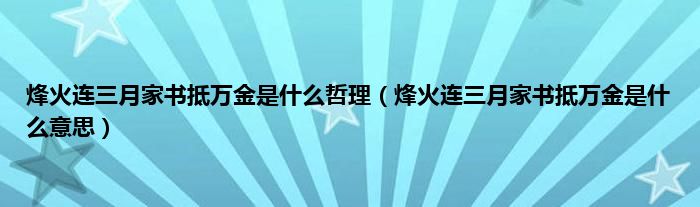 大家好,小科来为大家解答以上问题。烽火连三月家书抵万金是什么哲理,烽火连三月家书抵万金是什么意思很多人还不知道,现在让我们一起来看看吧!