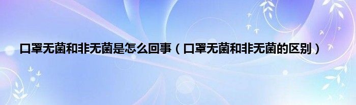 大家好,小科来为大家解答以上问题。口罩无菌和非无菌是怎么回事,口罩无菌和非无菌的区别很多人还不知道,现在让我们一起来看看吧!