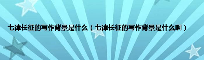 大家好,小科来为大家解答以上问题。七律长征的写作背景是什么,七律长征的写作背景是什么啊很多人还不知道,现在让我们一起来看看吧!