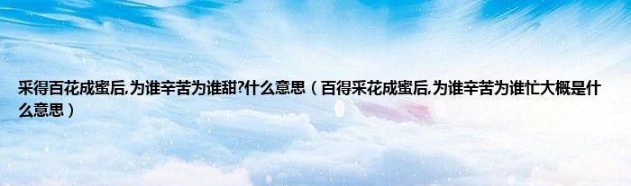 大家好,小科来为大家解答以上问题。采得百花成蜜后,为谁辛苦为谁甜?什么意思,百得采花成蜜后,为谁辛苦为谁忙大概是什么意思很多人还不知道,现在让我们一起来看看吧!