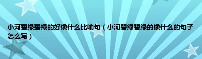 大家好,小科来为大家解答以上问题。小河碧绿碧绿的好像什么比喻句,小河碧绿碧绿的像什么的句子怎么写很多人还不知道,现在让我们一起来看看吧!
