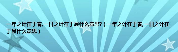 大家好,小科来为大家解答以上问题。一年之计在于春,一日之计在于晨什么意思?,一年之计在于春,一日之计在于晨什么意思很多人还不知道,现在让我们一起来看看吧!