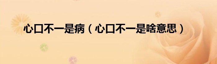 大家好,小科来为大家解答以上问题。心口不一是病,心口不一是啥意思很多人还不知道,现在让我们一起来看看吧!