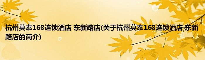 杭州莫泰168连锁酒店东新路店(关于杭州莫泰168连锁酒店东新路店的简介)