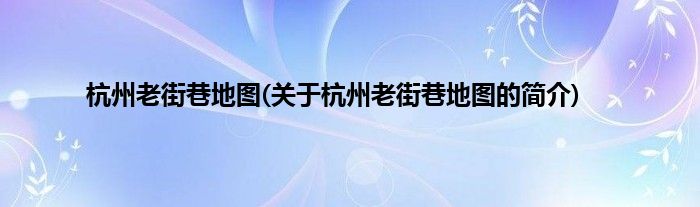 杭州老街巷地图(关于杭州老街巷地图的简介)