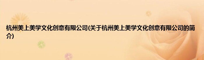 本文关于杭州美上美学文化创意有限公司的简介就讲解完毕,希望对大家有所帮助。