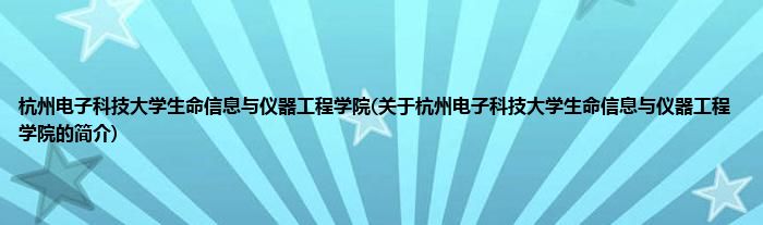 本文关于杭州电子科技大学生命信息与仪器工程学院的简介就讲解完毕,希望对大家有所帮助。