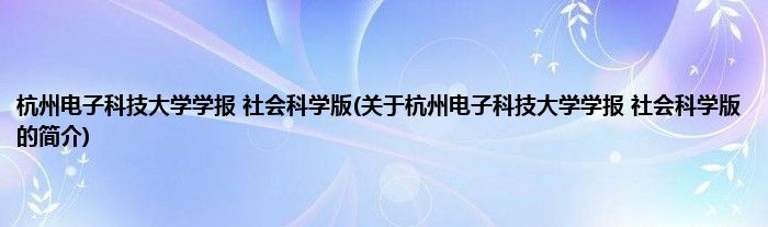 大家好,杭州电子科技大学学报 社会科学版,关于杭州电子科技大学学报 社会科学版的简介很多人还不知道,现在让我们一起来看看吧!