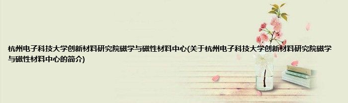 本文关于杭州电子科技大学创新材料研究院磁学与磁性材料中心的简介就讲解完毕,希望对大家有所帮助。