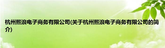 本文关于杭州熙浪电子商务有限公司的简介就讲解完毕,希望对大家有所帮助。