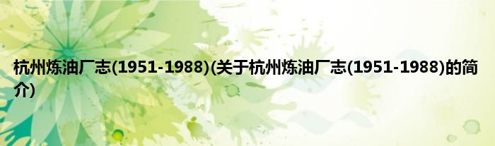 本文关于杭州炼油厂志(1951-1988)的简介就讲解完毕,希望对大家有所帮助。