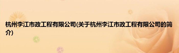 杭州李江市政工程有限公司(关于杭州李江市政工程有限公司的简介)