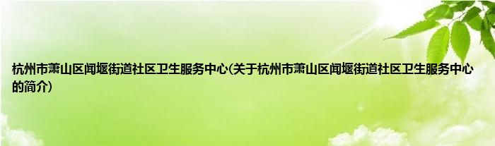杭州市萧山区闻堰街道社区卫生服务中心(关于杭州市萧山区闻堰街道社区卫生服务中心的简介)