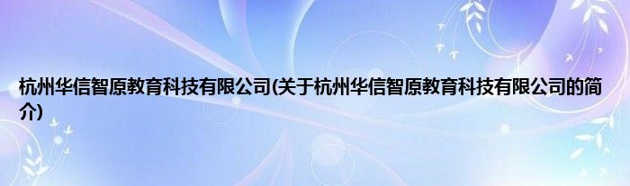 本文关于杭州华信智原教育科技有限公司的简介就讲解完毕,希望对大家有所帮助。